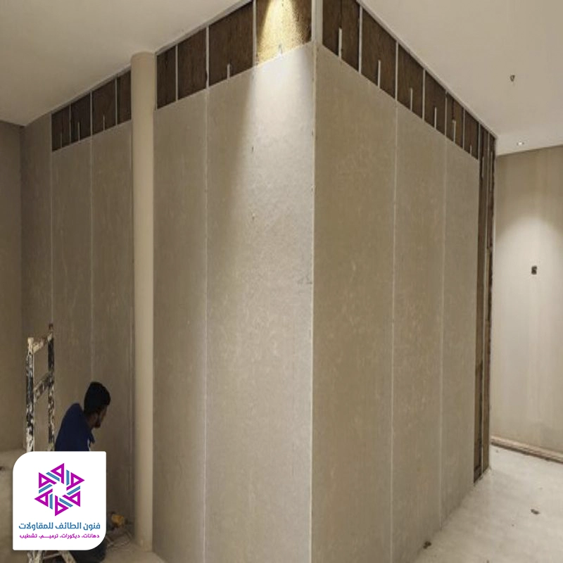 تغطية الجدران يمكن استخدامه كبديل للجبس في الجدران الداخلية.